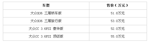 近日汽車探索從相關(guān)渠道獲得消息,大眾R36和CC車型進(jìn)口后售價將在51.8萬-55萬元之間。目前展車已經(jīng)到港,正在在等但相關(guān)手續(xù),不日即將到店。北京多家進(jìn)口大眾經(jīng)銷商已經(jīng)開始接受預(yù)訂,定金1-3萬元不等。