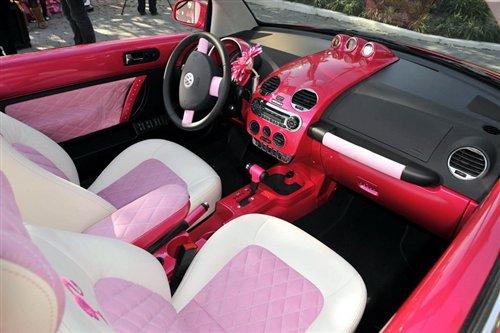 這款特別定制的新甲殼蟲(chóng)敞篷車(chē)擁有專屬的粉色車(chē)身,搭配白色的輪轂給人整體的感覺(jué)就像是芭比娃娃穿著粉色的衣服腳踏白色舞鞋給人以十分淑女優(yōu)雅的印象。