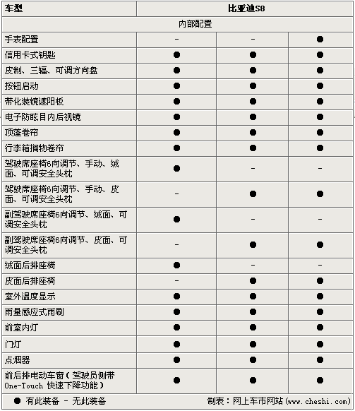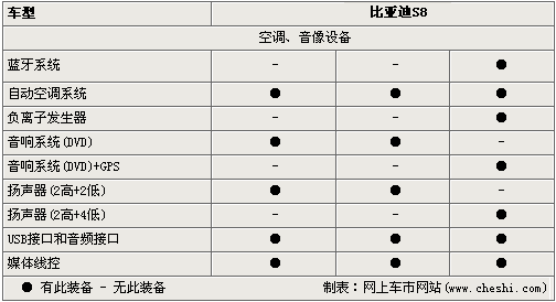 在空調(diào)、音像設(shè)備方面,S8配置了自動(dòng)空調(diào)系統(tǒng)、DVD娛樂系統(tǒng)及USB接口等,同時(shí)高配的豪華型擁有藍(lán)牙通信系統(tǒng)、GPS導(dǎo)航及負(fù)離子發(fā)生器等高端配置。 說(shuō)了這么多,消費(fèi)者更關(guān)心的應(yīng)該是這款硬頂敞篷跑車的價(jià)格了,據(jù)內(nèi)部人士透露它的價(jià)格將在20萬(wàn)元以內(nèi)。這樣的價(jià)格對(duì)于一款自主品牌的車似乎貴了一些,比亞迪是否會(huì)給我們帶來(lái)驚喜呢?讓我們拭目以待!