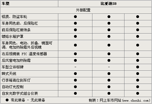 S8外形設(shè)計(jì)時(shí)尚動(dòng)感,兼具轎跑車特性。經(jīng)過(guò)比亞迪汽車工程研究院的精心打造,S8造型的前格柵、前組合燈和發(fā)動(dòng)機(jī)蓋吸取不同的設(shè)計(jì)元素,完美的有機(jī)整合在一起;車尾線條簡(jiǎn)潔而有力。S8整個(gè)造型充分考慮了雙門轎跑車和敞篷車的特點(diǎn),集動(dòng)感、和諧與典雅于一起。無(wú)門柱設(shè)計(jì)使整車線條更顯流暢,更顯S8典雅的氣質(zhì)。