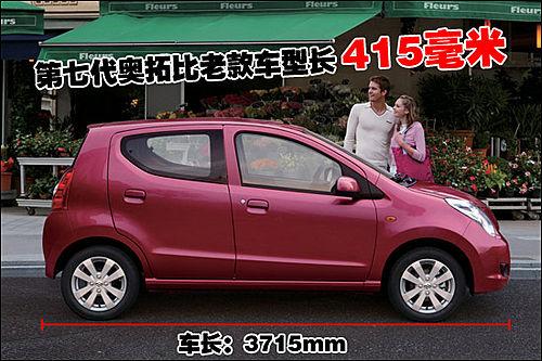 作為全面升級(jí)的換代車型,第七代奧拓的車長(zhǎng)可達(dá)3715毫米,比國(guó)內(nèi)市場(chǎng)銷售的老款?yuàn)W拓車型要長(zhǎng)出415毫米。主要是車身軸距及前臉的設(shè)計(jì)使第七代奧拓和老款車型產(chǎn)生如此大的差距,而全新奧拓的車內(nèi)腿部空間將更加寬敞。