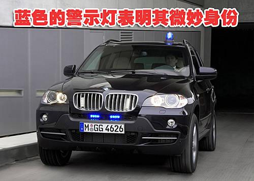這輛寶馬X5防彈車,在外觀上與普通車型并沒(méi)有明顯區(qū)別,保持了低調(diào)不張揚(yáng)的設(shè)計(jì)。車頂以及前格柵中的藍(lán)色警示燈向我們暗示了這輛車的特殊身份。