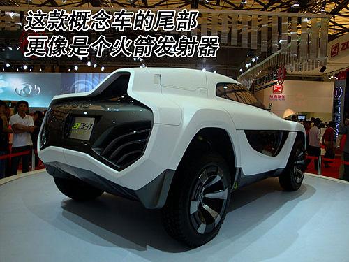 長(zhǎng)安E301概念車(chē)的尾部采用不規(guī)則狀設(shè)計(jì),左右兩側(cè)并沒(méi)有采用對(duì)稱的設(shè)計(jì),而是采用凹凸的造型方式,看上去非常另類(lèi)。而且這款車(chē)的尾部整體設(shè)計(jì)也比較有特點(diǎn),很像是一個(gè)火箭發(fā)射器。