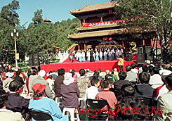 北京民眾二日在景山公園參加國慶游園活動(dòng)時(shí),觀看各文藝團(tuán)體的精彩演出,歡渡國慶節(jié)假日。