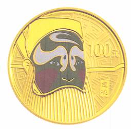1/4盎司彩色圓形金質(zhì)紀念幣背面圖案為表現(xiàn)廉潔清正、疾惡如仇的“包拯”京劇臉譜造型(局部彩色),并刊“包拯”中文字樣及面額。1/4盎司彩色圓形金質(zhì)紀念幣為精制幣,含純金1/4盎司,直徑22毫米,面額100元,成色99.9%,最大發(fā)行量30000枚。