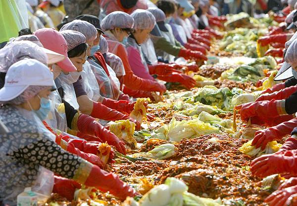 按傳統(tǒng),每年11月起,韓國(guó)家庭主婦就會(huì)把配好醬料的大白菜或蘿卜等放入大罐子中,埋入地下,讓泡菜在冬季里發(fā)酵。不少家庭買來(lái)“泡菜冰箱”,讓冰箱內(nèi)部溫度適宜泡菜發(fā)酵。