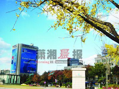 寫著G20首爾峰會(huì)“跨越危機(jī),攜手成長(zhǎng)”主題的大樓。圖/記者肖中潔