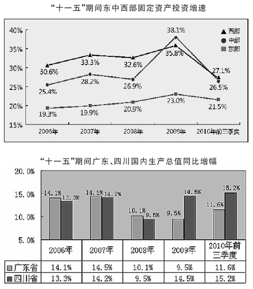 “十一五”期間,國家促進(jìn)區(qū)域協(xié)調(diào)發(fā)展的政策力度前所未有,各地對地區(qū)發(fā)展戰(zhàn)略研究與實施的重視程度前所未有,區(qū)域經(jīng)濟(jì)發(fā)展取得的成績也前所未有。特別是隨著一系列區(qū)域規(guī)劃和政策文件的密集出臺,東部地區(qū)的發(fā)展支撐帶布局進(jìn)一步完善,中西部地區(qū)新的增長極不斷涌現(xiàn),中國區(qū)域經(jīng)濟(jì)版圖日趨清晰,沿海與內(nèi)地競相奮進(jìn)、良性互動的發(fā)展格局基本形成。