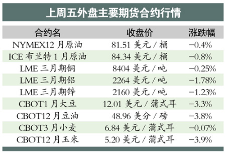 紐約商業(yè)期貨交易所(NYMEX)的原油期貨略跌0.4%,收報81.51美元/桶;倫敦金屬交易所(LME)的有色金屬也大多收跌,但銅、鋁、鋅三個品種的跌幅都在2%以內。