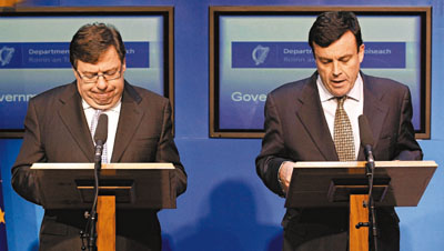 愛爾蘭總理考恩表示,援助計(jì)劃包括兩部分:首先當(dāng)?shù)劂y行業(yè)需要縮小規(guī)模,出售部分非核心資產(chǎn);其次是落實(shí)4年緊縮計(jì)劃,目標(biāo)在2014年前削赤150億歐元,將財(cái)赤占國內(nèi)生產(chǎn)總值(GDP)比例由目前32%減至歐盟規(guī)定的3%。