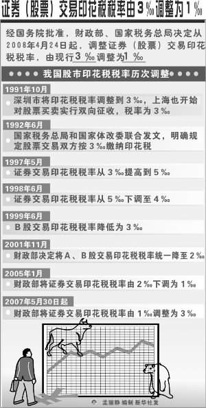 去年5月30日,證券(股票)印花稅率由1%。提高到3%。,股票市場在隨后的幾個交易日內(nèi)出現(xiàn)大幅下跌。而從去年11月以來,在短短的不到130個交易日內(nèi),股指下跌了50%,市場中人氣渙散,呼吁下調(diào)印花稅的呼聲日益高漲。