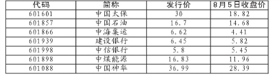 圖:昨天收盤價(jià)在發(fā)行價(jià)以下大盤股一覽 圖片來源:京華時(shí)報(bào)