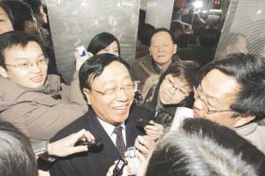昨日上午10點(diǎn)左右,鐵道大廈大廳正門站著數(shù)十位翹首以待的記者,他們神情專注,因?yàn)榉吨飨苡锌赡軙?huì)在這里出現(xiàn)。短暫的等待中,突然傳來(lái)一聲低語(yǔ):“范主席來(lái)了!”聲音雖輕微,但已足夠令記者們興奮。