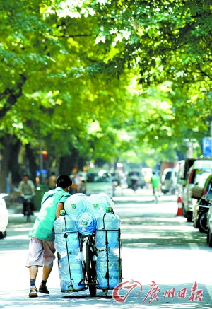 今年春節(jié)后廣州月薪2000元招不到送水工的新聞曾引起全國關(guān)注。日前記者采訪發(fā)現(xiàn)在天河體育中心寫字樓周邊水店的“勤快”送水工在高峰期的八九月份月薪最高竟可達5000元,而且多數(shù)水店整個夏天幾乎都是在送水工奇“缺”的狀態(tài)下咬牙“挺”過來的。記者調(diào)查發(fā)現(xiàn),由于送水工過于辛苦,已成“短線”工種,部分送水工做一兩年攢下錢即轉(zhuǎn)行,多數(shù)水店難覓3年工齡以上的熟手送水工。