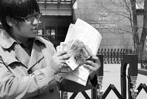 昨日上午,王昊來到位于金融街的工商銀行,將“內(nèi)需金”取出,賬戶隨之注銷。為紀念“內(nèi)需金”計劃,王昊要求銀行打印匯款詳單。由于匯款網(wǎng)友眾多,工作人員打印詳單花了2個多小時。
