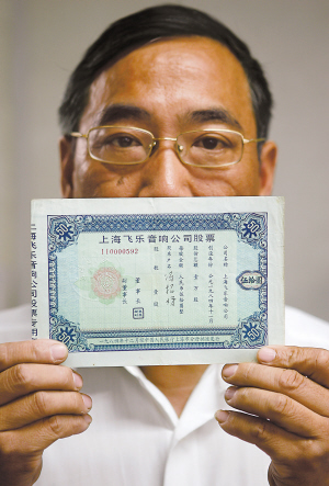 2001年,盧工郵市第一次舉行股票實(shí)物展,因擁有“小飛樂”,我也去打探打探。參展的人一聽我有“84版小飛樂”,紛紛圍上來問:“賣不賣?”價錢非常誘人,二至三萬元。人的心理很怪,我原來也沒怎樣看重這張“小飛樂”,看到現(xiàn)在這么“受歡迎”,就不愿意賣了。于是,一直保存至今。