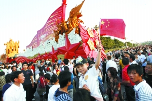 國(guó)慶“黃金周”昨日落下帷幕,北京在8天假期里共接待游客1497萬(wàn)人次,旅游總收入53.9億元,超過(guò)2008年歷史最好水平3.1%。其中,天安門(mén)廣場(chǎng)一地的客流量便突破了820萬(wàn)人次,超過(guò)去年“黃金周”北京接待游客的總數(shù)。