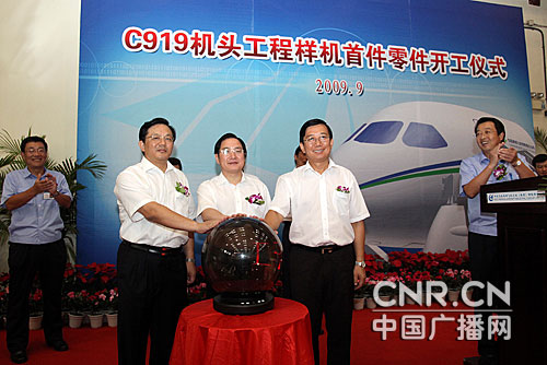 9月1日,中國C919大型客機項目機頭工程樣機在中航工業(yè)成飛民機公司隆重開工,標志著中國自主設計制造的C919大型客機項目取得了階段性的突破。中國商飛總經理金壯龍,中共四川省委常委、成都市委書記李春城,中航工業(yè)副總經理顧惠忠,中國商飛副總經理羅榮懷、吳光輝等領導出席了開工儀式。