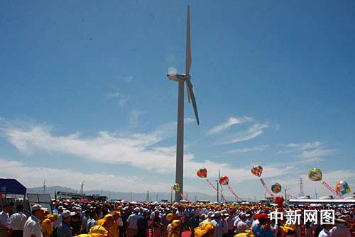 國家發(fā)改委副主任、國家能源局局長張國寶今天在開工儀式上說,受風(fēng)能資源與電力市場分布不平衡的影響,中國風(fēng)電的開發(fā)建設(shè)受電力市場制約很大。為此,采取了“建設(shè)大基地、融入大電網(wǎng)”的發(fā)展方式,在風(fēng)能資源最豐富的區(qū)域建設(shè)千萬千瓦級風(fēng)電基地,打造“風(fēng)電三峽”。酒泉風(fēng)電基地是率先建設(shè)的首座千萬千瓦級風(fēng)電示范基地,已核準(zhǔn)建設(shè)項目的總規(guī)模500萬千瓦,今后還將建設(shè)第二期工程。