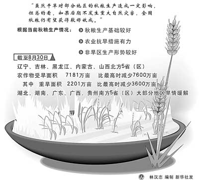 陳萌山表示,隨著近期旱區(qū)大范圍降雨和抗旱措施進(jìn)一步落實(shí)到位,南方和北方旱情均明顯緩解。總的來(lái)看,如果后期不發(fā)生重大自然災(zāi)害,全國(guó)秋糧仍有望獲得較好收成。作出該判斷基于幾個(gè)方面: