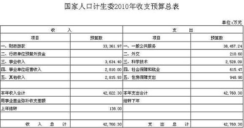 關于國家人口計生委2010年收支預算總表的說明