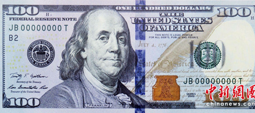 中新網4月22日電 據“中央社”報道,為了防止美鈔遭到偽造,新版百元美鈔將于明年2月上市,設計重點是鈔票上將有可以變換圖型的3D立體安全圖樣。<<<高清圖