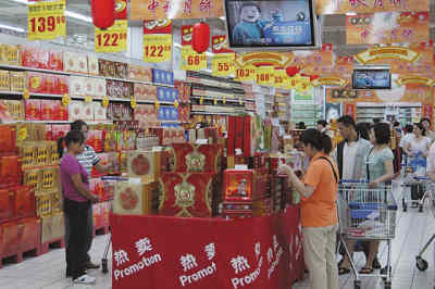 天津易買得紅橋店銷售人員介紹,小月餅彌補(bǔ)了市場(chǎng)的空缺,使賣場(chǎng)內(nèi)高中低檔月餅都比較齊全。小月餅雖然包裝簡(jiǎn)單,但包裝上注明了生產(chǎn)日期、配料、口味等,質(zhì)量可以讓消費(fèi)者放心。 (王飛航 孟華 張琛)