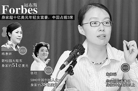 《福布斯》近日最新發(fā)布的一紙富豪榜,將香港華寶國際主席朱林瑤推上前臺。這份年齡在24歲至50歲之間的全球20位擁有10億美元以上財(cái)富的女億萬富豪名單中,大多是通過繼承等方式獲得巨額財(cái)富,其中只有4位是白手起家,而現(xiàn)年只有38歲的朱林瑤被稱為最年輕的白手起家型女富豪,《福布斯》估計(jì),她的身家至少在20億美元以上。據(jù)了解,這位此前被媒體普遍報(bào)道為來自中國香港的女富豪實(shí)際上是四川人,其丈夫則是被稱為 “中國香精大王”的林國文。