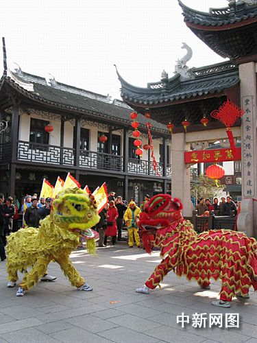 中新網(wǎng)蘇州一月一日(姚靜)古鎮(zhèn)周莊今天張燈結(jié)彩,喜氣洋洋,貞豐澤國牌樓兩側(cè)彩旗飄揚(yáng),全福路上龍舞獅躍,寓意著國泰民安、風(fēng)調(diào)雨順。身穿彩袍、腳蹬皂靴的周莊巨賈“沈萬三”攜著丫鬟、家丁百余人親自為古鎮(zhèn)開莊迎客。
