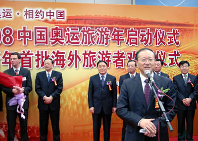 邵琪偉在致辭中說,改革開放以來,中國旅游業(yè)所取得的驕人成就令世界矚目,豐富多彩的旅游資源、日臻完善的旅游設(shè)施和和諧安定的社會環(huán)境越來越受到海外旅游者的歡迎。2008年對中國來說是具有特殊意義的一年。2008年8月,奧運(yùn)會將在北京舉辦,屆時,我們將迎接來自世界各地的奧運(yùn)大家庭成員和五湖四海的朋友們。中國國家旅游局確定2008年為“中國奧運(yùn)旅游年”,我們將通過“北京奧運(yùn)、相約中國”這一主題,推廣奧運(yùn),推廣中國,讓更多的海外旅游者通過奧運(yùn)了解北京,了解中國,讓更多的海外旅游者到北京來,到中國各地去。