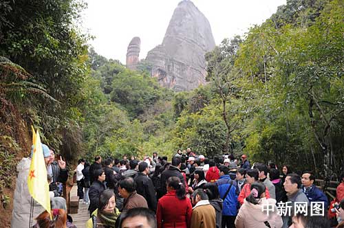 中新網(wǎng)韶關(guān)1月28日電(馮昶 劉加青 李正紅)今天是大年初三,廣東丹霞山景區(qū)內(nèi)游人如鯽,迎來(lái)了牛年春節(jié)旅游首個(gè)接待高峰。
