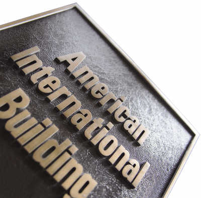 AIG標(biāo)識(shí)現(xiàn)在矗立于其全球總部——美國國際大廈,黃銅色鐫刻的“美國國際大廈”的標(biāo)志已然成為公司的招牌。這座大廈坐落在紐約松木街的街角處,繼世貿(mào)大廈倒塌后成為曼哈頓區(qū)的最高大樓。AIG曾表示,或?qū)⒊鍪圻@座總部大樓,籌集更多資金以償還政府貸款。