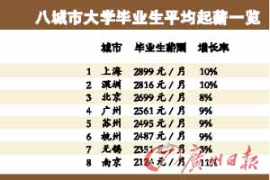 在廣州就業(yè)的大學畢業(yè)生,今年的薪酬起薪平均為2561元/月,在全國位居第四,相比去年增長了9%。
