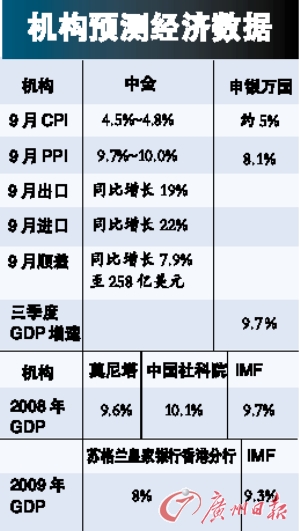原定于21日發(fā)布的今年前三季度國民經(jīng)濟(jì)運(yùn)行情況提前一天發(fā)布。多家機(jī)構(gòu)預(yù)測,經(jīng)濟(jì)增長率可能降至9.7%,為近年來的低值,CPI和PPI也將雙雙回落。提前發(fā)布數(shù)據(jù)的舉措引發(fā)市場對下一組宏觀調(diào)控政策出臺的猜測。
