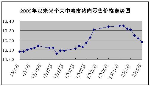 中新網(wǎng)1月19日電 據(jù)國家發(fā)展改革委價(jià)格監(jiān)測中心監(jiān)測,上周(2009年2月1日~2009年2月6日,下同)全國36個(gè)大中城市集市、超市豬肉(精瘦肉)平均零售價(jià)格每500克為13.27元,與春節(jié)前一周(2009年1月19日~2009年1月24日,下同)相比上漲0.68%。
