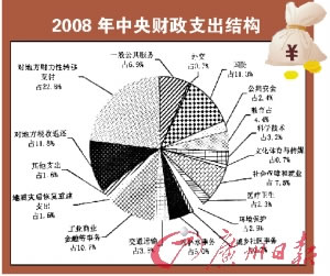 《報告》指出,“2009年財政將十分困難,收支緊張的矛盾非常突出!痹谌珖斦С鲱A(yù)算安排中,增長最大的是保障性安居工程,預(yù)算數(shù)為2008年執(zhí)行數(shù)的299.6%,而唯一減少的一項是金融事務(wù)的支出,由于用于支持金融體制改革方面的相關(guān)支出減少,金融事務(wù)支出預(yù)算數(shù)為2008年執(zhí)行數(shù)的42.3%。