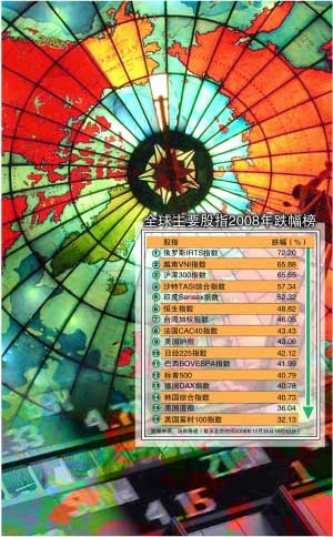 發(fā)達(dá)經(jīng)濟體如此,以往一直以“免疫力”強著稱的新興市場也未能幸免。其中,受到油價下跌和金融危機雙重打擊的俄羅斯股市全年跌幅超過70%,高居全球之首!敖鸫u四國”中的另外三國——中國、印度和巴西,股市全年跌幅都超過40%甚至高達(dá)60%。