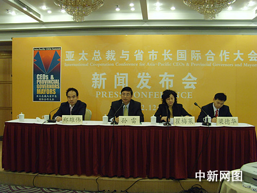 中新網(wǎng)11月28日電 今日下午,亞太總裁協(xié)會與廣州市人民政府聯(lián)合在京宣布:第三屆亞太總裁與省市長國際合作大會將于今年12月12日-14日在中國第三大經(jīng)濟中心城市廣州市隆重舉辦。亞太總裁協(xié)會全球執(zhí)行主席鄭雄偉及第三屆亞太總裁與省市長國際合作大會組委會辦公室主任、廣州市對外貿(mào)易經(jīng)濟合作局副局長孫雷等出席了當天發(fā)布會并接受記者提問。