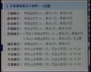 跨行通存通兌業(yè)務開通前四天,出現(xiàn)了叫好不叫座的情形,很多客戶其實也希望能享受這種便利,但是一看到銀行的收費標準,就打退堂鼓了。而記者也注意到,在各家銀行各自拿出的收費單上,門檻高的都是國有商業(yè)銀行,而那些股份制商業(yè)銀行收費卻普遍較低,中間相差最大的甚至達到了十倍,為什么同一個業(yè)務,不同銀行之間的收費差距會這么大?