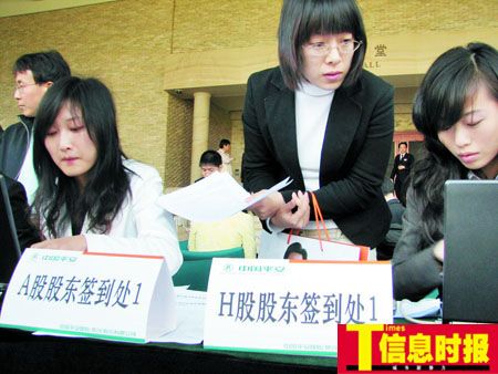 備受矚目的中國平安2008年第一次臨時(shí)股東大會(huì)如期舉行。昨天上午,記者趕到位于深圳觀瀾的平安金融學(xué)院股東大會(huì)會(huì)場,只見會(huì)場門外已經(jīng)聚集了近百人排隊(duì)。經(jīng)過詢問,原來這些都是來自內(nèi)地和香港特區(qū)的平安股東,正在等候驗(yàn)明股東身份。平安派出20多名員工到場專門負(fù)責(zé)為股東驗(yàn)證身份,但來自全國各地的股東陸續(xù)到來,令場面一度非常擁擠。