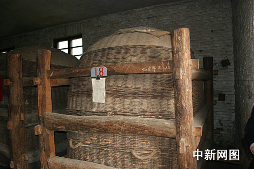 在1956年建造的青磚紅瓦的西鳳酒儲(chǔ)存庫房內(nèi),放著兩排大酒海,大酒海是用一種產(chǎn)自秦嶺深處多年生的特殊藤條編制外殼,然后先用豆腐等原料從里面填糊藤條的縫隙,等干燥后,先后在里面裱糊20層白棉布,等再次干燥后,再在其表面涂上蜂蠟和菜籽油養(yǎng)護(hù)一段時(shí)間才可投入使用。庫房內(nèi)存儲(chǔ)著各個(gè)時(shí)期封存的西鳳酒,從1957年到20世紀(jì)80年代,網(wǎng)絡(luò)媒體記者多是80后,紛紛找與自己“同齡”的大酒海合影。