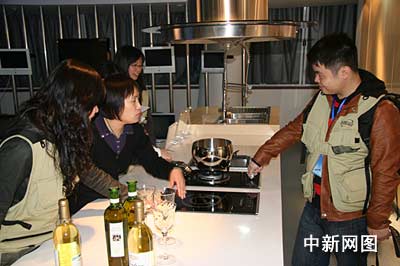 網(wǎng)絡(luò)媒體記者興致勃勃“探索”一套廚具