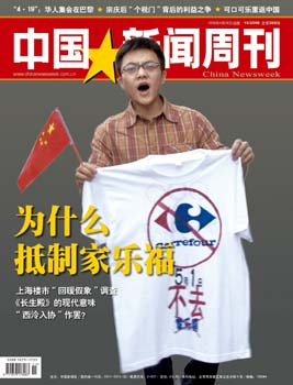 這是21世紀初中國民眾第三次大規(guī)模抵制洋貨,矛頭指向法國在中國最真實的存在——遍及30多個城市、擁有112家分店的家樂福超市。傳導鏈條則是人們熟悉的渠道——網(wǎng)絡社區(qū)、QQ、MSN。 事件發(fā)生后,《中國新聞周刊》記者前往北京、昆明、武漢等地,對“抵制家樂!钡娜巳、原因和背景進行了調(diào)查,這就是本期《中國新聞周刊》的封面故事。