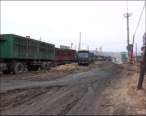 在離這家企業(yè)不遠(yuǎn)的一處私營(yíng)煤礦門口,記者見到頗為壯觀的場(chǎng)面,一些重型貨車全是來拉電煤的,由于礦上庫存不夠,這些車輛只能在這等待現(xiàn)生產(chǎn)出來的電煤。