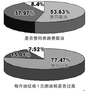 在是否贊同養(yǎng)路費(fèi)取消,改成一升油征收1元燃油費(fèi)的調(diào)查中,83043人贊成費(fèi)改稅,占53.63%,有58799人反對(duì)費(fèi)改稅,占37.97%,而另有13003人表示不好說,占8.4%。該調(diào)查顯示,到記者截稿為止,贊同費(fèi)改稅的網(wǎng)民超過半數(shù),顯著高于其他兩種意見。