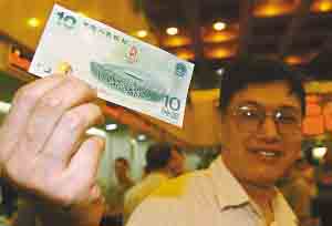 據(jù)悉,面額10元的紀(jì)念鈔在期貨市場(chǎng)已經(jīng)炒到接近400元一張,有人成功兌換后,轉(zhuǎn)身就以300元一張出手。