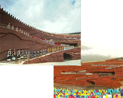 記者:“我現(xiàn)在是在麗江海拔3100米,玉龍雪山的半山腰,過(guò)去這里只是普通的山洼洼,但是從2006年7月開(kāi)始,印象系列的第二部作品《印象麗江》在這里演出,把這里變成了世界上海拔最高的實(shí)景演出場(chǎng)地,從此之后演出每天進(jìn)行,到現(xiàn)在已經(jīng)有200萬(wàn)名觀眾觀看了演出,吸引他們的是什么呢?”
