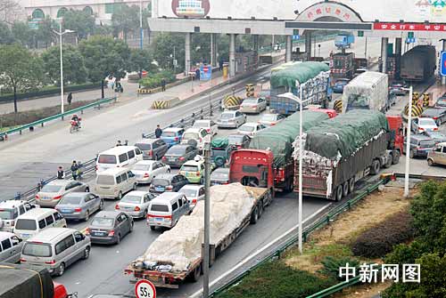 中新網(wǎng)九江2月7日電 (胡國林)連日來,九江長江大橋車輛驟增,自2月6日8時(shí)至7日8時(shí),九江長江大橋車輛日通行量達(dá)到3.1萬輛以上,已超過大橋的承載飽和數(shù)近60%,堵車嚴(yán)重,排隊(duì)車流自大橋收費(fèi)處蔓延數(shù)公里。