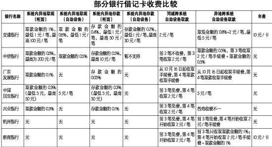 根據(jù)目前杭州各家銀行公布的收費標準看,四大銀行的銀行卡收費標準是最高的。記者咨詢了多家銀行的收費標準,市民在選辦銀行卡時,不妨做個比較。(黃丹)