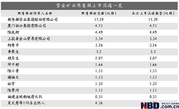 此外,廈門(mén)恒興實(shí)業(yè)有限公司和上杭縣金山貿(mào)易有限公司分別持有4.75億股和3.34億股。陳發(fā)樹(shù)、柯希平、李榮生、胡月生、鄧干彬、陳小青、謝福文、林宇以及陳景河9位自然人解禁股數(shù)也超過(guò)了1億股,其中陳發(fā)樹(shù)解禁數(shù)量最多,達(dá)到4.49億股。這些自然人股東的賬面收益最多的高達(dá)44億元,最少的也有11.27億元。